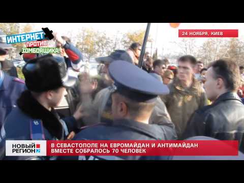 С евромайдана выгнали молодого человека с лозунгом «Путин, иди геть!», сочтя его провокационным. Сторонники ассоциации с ЕС скандировали «Севастополь за Европу!», «Украина!» и пели государственный гимн. Их оппоненты исполняли «Легендарный Севастополь» и «Идет война народная».