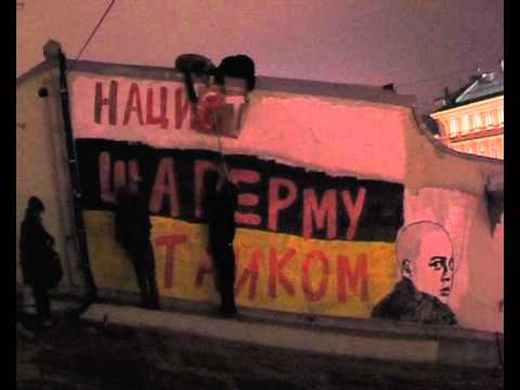 Петербургские активисты поздравили русских националистов с «Днем русской нации», отмечаемом ими 4 ноября, нарисовав шестиметровое граффити на одном из домов по Невскому проспекту – «Нацисты едят шаверму тайком». Об этом пишет в ЖЖ один из участников акции pollen_live. По его информации, за акцией стоят арт-группа «Аффинити», группа «Верхотура и друзья» и анархисты Петербурга.