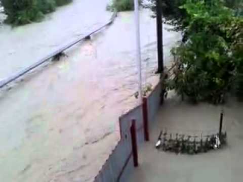 Потоп в Лоо. Вид из двора на бурную реку, в которую превратилась улица.