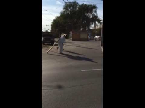 Полицию вызвали горожане, которых взволновал босой, облаченный в простыню гражданин, несущий на спине большую Т-образную конструкцию. Наряд полиции доставил «Иисуса» в дежурную часть, где его опросили и отпустили.