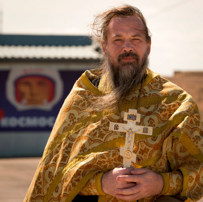 Стоит отметить, что в течение 20 лет большинство пусков российских космических кораблей с Байконура благословляет настоятель храма Святого великомученика Георгия Победоносца протоиерей Сергей Бычков.