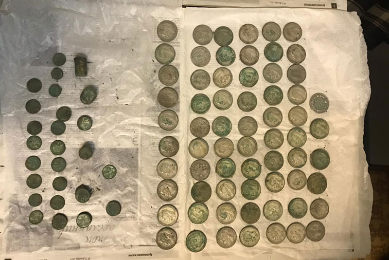 О старинной находке сообщил глава Департамента охраны культурного наследия Киевской городской администрации Александр Никоряк в своем Facebook*. По его словам, около 2 килограммов серебряных монет номиналом 1 рубль, 50, 20 и 10 копеек были обнаружены участниками экспедиции Института археологии Национальной академии наук Украины (НАНУ) в подвале снесенного в 70-е годы прошлого столетия здания на территории заповедника.