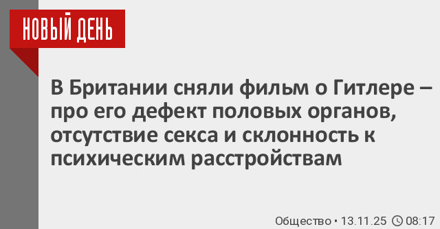 Британский вещатель Channel 4 снял двухсерийный фильм про Гитлера. Из него следует, что у диктатора мог быть врожденный дефект – микропенис. И, предположили авторы, у Гитлера никогда не было секса.