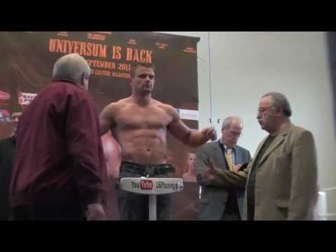 В главном бою этого вечера боксер украинского происхождения Александр Дмитренко (31-1-0, 21 КО), который сейчас выступает под флагом Германии, проведет защиту титула чемпиона Европы по версии EBU от притязаний британца Майка Спротта (36-16-0, 17 КО). Вес чемпиона был зафиксирован на уровне 113,5 кг, в то время как претендент показал 110,5 кг.