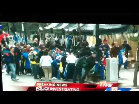 В Бостоне после двух взрывов по окончании марафона люди начали заниматься мародерством. Это снял на видео один из очевидцев.