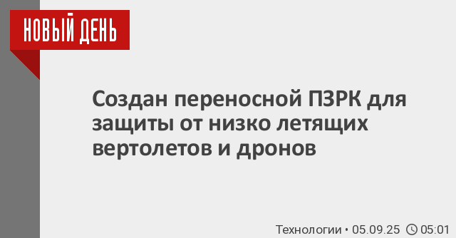 Российские специалисты создали противодроновый переносной зенитный ракетный комплекс (ППЗРК) ближнего действия. Он служит для защиты от низколетящих беспилотников и вертолетов. Об этом ТАСС сообщил официальный представитель НПО «Кайсант».