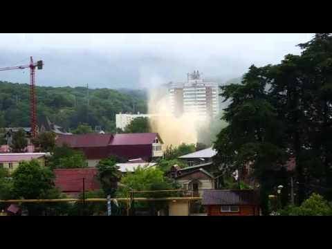 Видео МЧС, снятое с вертолета и из спасательных машин в центре Адлера.