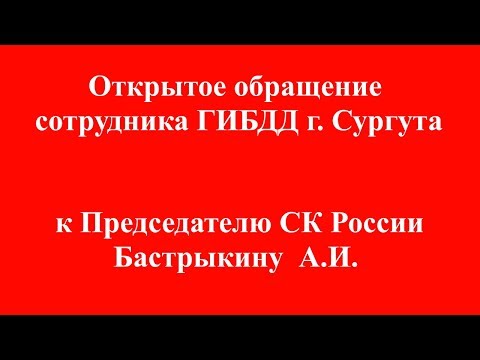 Ранее в Сети появилось обращение командира роты отдельного батальона ГИБДД Сургута капитана Сергея Иванова. Он выложил в YouTube свое видеообращение на имя Бастрыкина. Он пояснил, что вынужден обратиться к главе СК напрямую, поскольку региональные инстанции игнорируют его заявления о многочисленных фактах коррупции в руководстве ГИБДД.