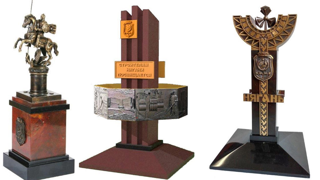 Некоторые фигуры сделаны из яшмы и бронзы. Самый дорогой сувенир – это памятник строителям Нягани за 22 тыс. рублей. Стела Нягань обойдётся бюджету муниципалитета в 20,6 тыс. рублей.