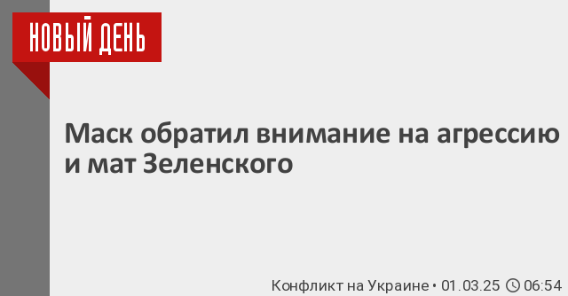 Маск сделал репост скандальной встречи в Белом доме. Автор публикации высказался против идеи о том, что Трамп был эмоционален по отношению к Зеленскому без причины, и поминутно расписал агрессивные высказывания последнего. Среди выделенных фрагментов – матерное выражение Зеленского шёпотом на русском в ответ на реплику Вэнса. Как сообщает «Новый День», слова, произнесенные Зеленским, вполне можно и по губам прочитать и даже расслышать.