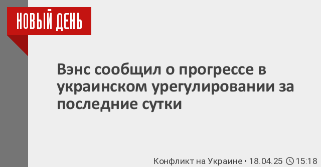 Вице-президент США Джей Ди Вэнс сообщил о подвижках в урегулировании украинского конфликта за последние 24 часа и выразил оптимизм по поводу завершения боевых действий. Об этом он заявил в ходе визита в Италию.