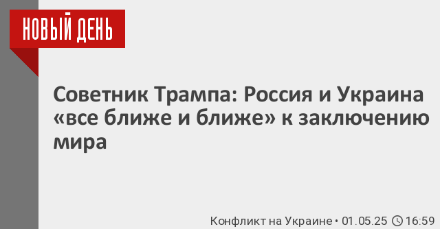 Советник Трампа: Россия и Украина «все ближе и ближе» к заключению мира