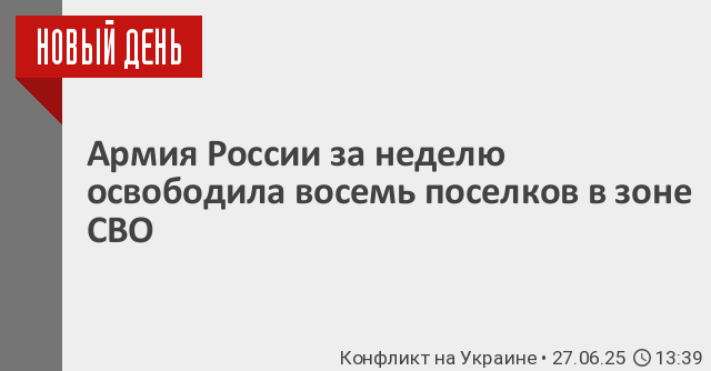 Российские войска продолжили продвижение в глубину обороны противника в зоне спецоперации. С 21 по 27 июня ВС РФ взяли под контроль восемь населенных пунктов в Харьковской области и ДНР. Об этом сообщает Минобороны России.