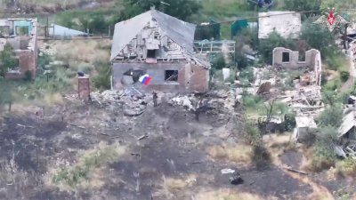 Минобороны распространило кадры из освобожденного города, российские десантники подняли флаги России и ВДВ на окраинах микрорайонов Шевченко и Южный в знак освобождения Часова Яра.