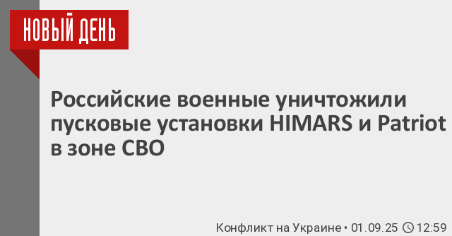 «Уничтожены пусковая установка реактивной системы залпового огня HIMARS, многофункциональная радиолокационная станция AN/MPQ-65, кабина управления и пусковая установка зенитного ракетного комплекса «Patriot» производства США», – говорится в сообщении оборонного ведомства.