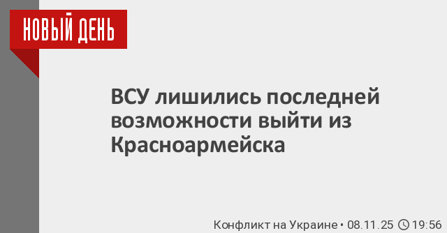 По его словам, ВС РФ перекрыли последние пути выхода из города. «Из Красноармейска противнику уже не выйти, последний путь взят нашими силами под полный контроль», – сказал он.