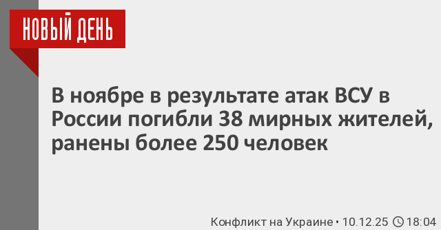 По итогам ноября текущего года в результате атаки вооруженных формирований Украины пострадали как минимум 300 мирных жителей России. Как сообщил посол по особым поручениям МИД РФ Родион Мирошник, ранения различной степени тяжести получили 262 человека, погибли 38.