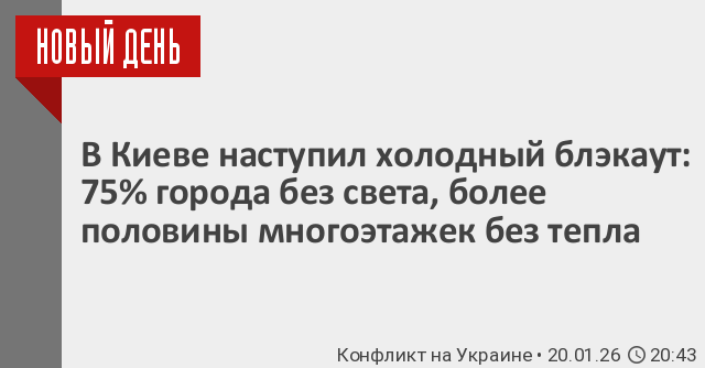 Самая сложная ситуация – в Киеве и области, Харьковской, Сумской, Донецкой, Одесской и Полтавской областях. В столице Украины без тепла остаются 4000 многоэтажек, что составляет почти половину жилого фонда, уточнил мэр Киева Виталий Кличко.