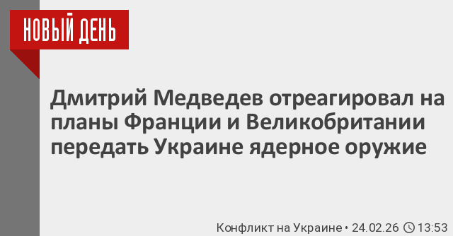 «Скажу очевидную и жесткую вещь. Информация СВР о намерении Франции и Британии передать киевскому нацистскому режиму ядерные технологии радикально меняет ситуацию. И дело тут не в разрушении ДНЯО и еще чего-то там в международном праве. Это прямая передача ядерного оружия воюющей стране. Не может быть и тени сомнения в том, что России при таком развитии событий придется использовать любое, в том числе нестратегическое ядерное оружие, по целям на Украине, представляющим угрозу нашей стране. А в случае необходимости – и по странам-поставщикам, которые становятся соучастниками ядерного конфликта с Россией. Это тот симметричный ответ, на который имеет право РФ», – написал Медведев в своем телеграм-канале.