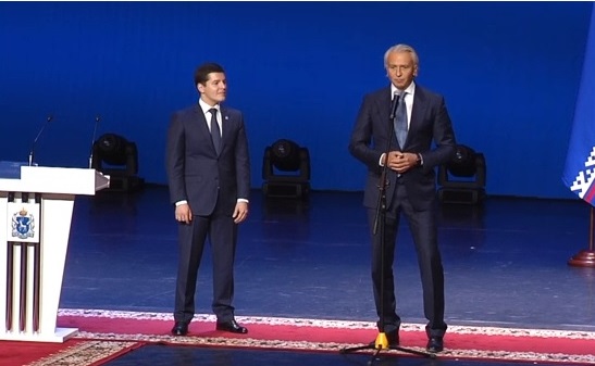 На церемонии инаугурации нового губернатора Ямала Дмитрия Артюхова поздравили представители трёх нефтегазовых компаний, главы соседних регионов и два бывших руководителя автономии. Церемония прошла в день голосования 9 сентября 2018 года в Салехарде. Лейтмотивом мероприятия стала преемственность власти. Напомним, Дмитрий Артюхов сначала был помощником экс-главы региона Дмитрия Кобылкина, а потом заместителем губернатора по экономике. На торжестве традиционно спела депутат заксобрания Елена Лаптандер.