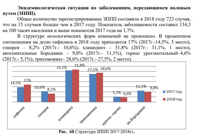 «Окружной показатель выше показателя по РФ на 43 процента. Из общего количества зарегистрированных случаев заболевания сифилисом – 123 или 100 процентов приходится на взрослое население (2017 год- 1 ребенок до 1 года)", – говорится в материалах санитарных врачей.