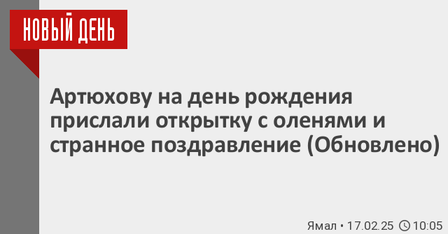 Ветслужба Ямала одной из первых, в 9 утра, поздравила Артюхова и прислала ему открытку с оленями из тундры. В поздравительном тексте, в частности, говорится (орфография и пунктуация – авторские, взято из тг-канала «Ветслужба Ямала» – прим. НД): «С Днём Рождения, Дмитрий Андреевич! Благодаря вашему плану Ямал развития, оставаясь в регионе, где сочетаются передовые технологии, забота о свете и уважение к традициям.