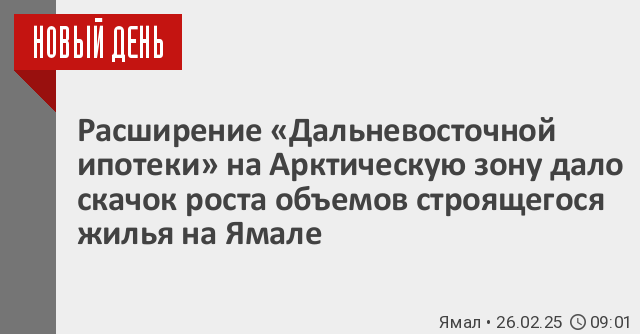 С момента расширения программы «Дальневосточная ипотека» на Арктическую зону в ноябре 2023 года в нескольких регионах, включая Ямал, зафиксирован существенный рост объемов строящегося жилья. Об этом сообщили в Министерстве развития Дальнего Востока и Арктики.