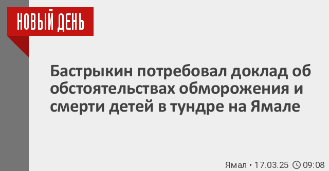 Глава СКР Александр Бастрыкин запросил доклад об обстоятельствах трагедии на Ямале: дети замёрзли насмерть, оставшись ночевать посреди тундры вместе с родителями. Спать в санях ямальцам пришлось, так как снегоход, на котором они передвигались, сломался.