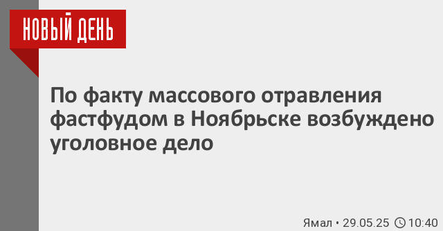 Ноябрьский межрайонный следственный отдел следственного управления Следственного комитета Российской Федерации по Ямало-Ненецкому автономному округу возбудил уголовное дело по факту пищевого отравления жителей Ноябрьска, по признакам преступления, предусмотренного ч. 1 ст. 238 УК РФ (оказание услуг, не отвечающих требованиям безопасности).