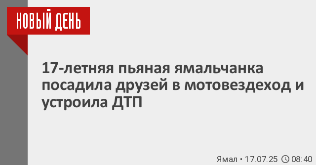 В Салехарде несовершеннолетняя девушка подозревается в нарушении правил дорожного движения и причинении тяжкого вреда здоровью человека. Как сообщили «Новому Дню» в пресс-службе СКР по ЯНАО, 17-летняя девушка выпила и решила покатать своих друзей на мотовездеходе. Прав на управление транспортным средством у нее не было. Но это не помешало ямальчанке посадить в мотовездеход трех друзей и поехать по городу. В какой-то момент она утратила контроль за машиной, и она перевернулась. Один из пассажиров получил травмы, которые были расценены как тяжкий вред здоровью.