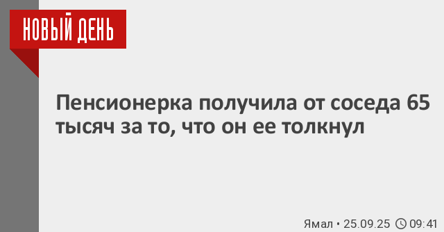Пенсионерка из Лабытнанги получила от соседа 65 тысяч за то, что он ее толкнул.