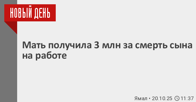 На Ямале мать получит 3 млн рублей за смерть сына на работе.