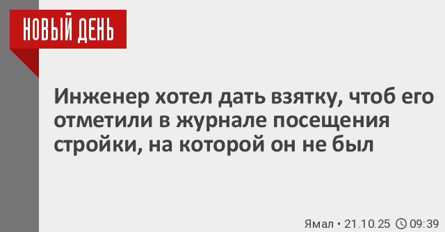 На Ямале ведущий инженер одного из бюджетных учреждений пытался дать взятку, чтобы его отметили в журнале посещения строительной площадки. Хотя объект он не посещал.