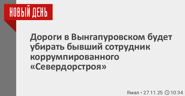 Заниматься уборкой и содержанием дорог в районе Вынгапуровский Ноябрьска в следующем, 2026 году, будет ИП Разумович – это бывший заместитель директора компании «Севердорстрой», хорошо известной в Ноябрьске.