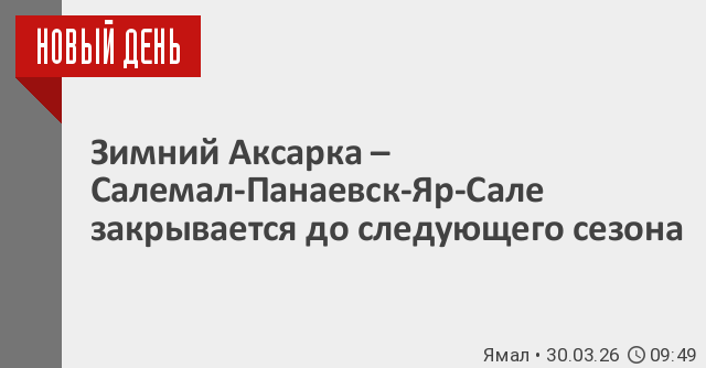30 марта 2026 года в 12 часов дня закрывается для движения транспорта зимник Аксарка-Салемал-Панаевск-Яр-Сале.