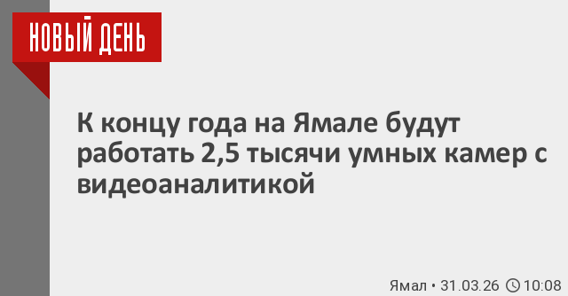 К концу 2026 года на Ямале будет работать 2,5 тысячи камер видеонаблюдения с функцией аналитики.