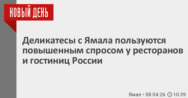 Ямальские предприятия нарастили поставки продукции в гостинично-ресторанный бизнес России. За первый квартал 2026 года объемы поставок оленины, рыбы и дикоросов в сегмент HoReCa достигли 200 тонн, что в два раза превышает показатель за аналогичный период прошлого года.