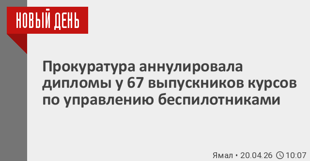 Как сообщили «Новому Дню» в пресс-службе Уральской транспортной прокуратуры, новоуренгойским отделом надзорного ведомства была проведена проверка исполнения ГАУ ДПО ЯНАО «Региональный институт развития образования» законодательства при реализации региональной программы «Развитие беспилотных авиационных систем в Ямало-Ненецком автономном округе».