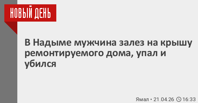Установлено, что мужчина, будучи ответственным за соблюдение правил безопасности при проведении строительных работ по муниципальному контракту по капитальному ремонту кровли многоквартирного дома в пгт. Пангоды, в августе 2025 года пустил на ремонтируемую крышу 4-этажного здания жилого дома постороннего. Мужчина без страховки упал с высоты 13 метров и умер в реанимации.
